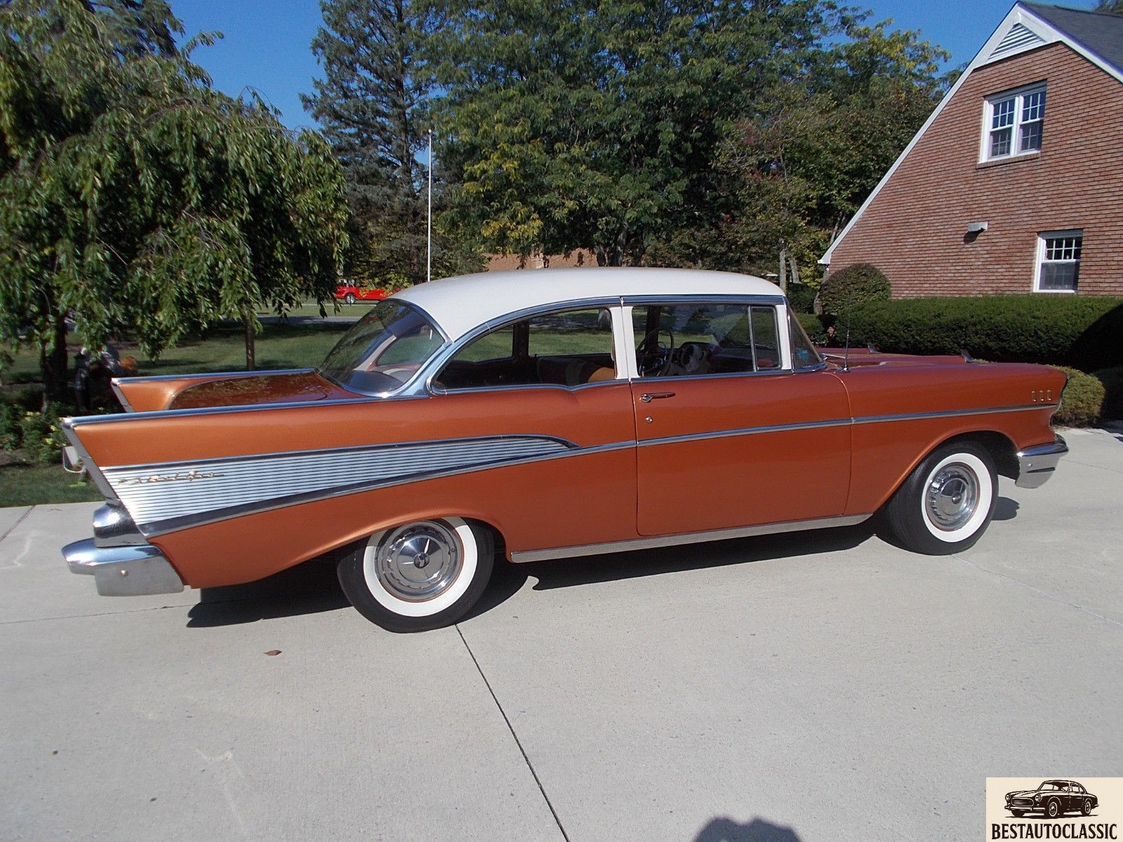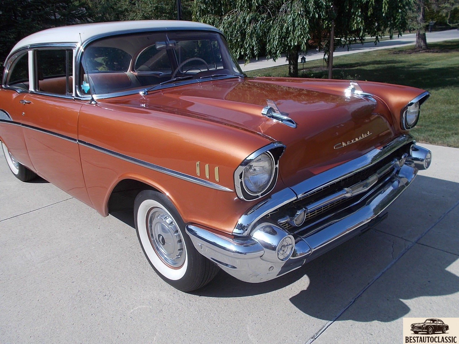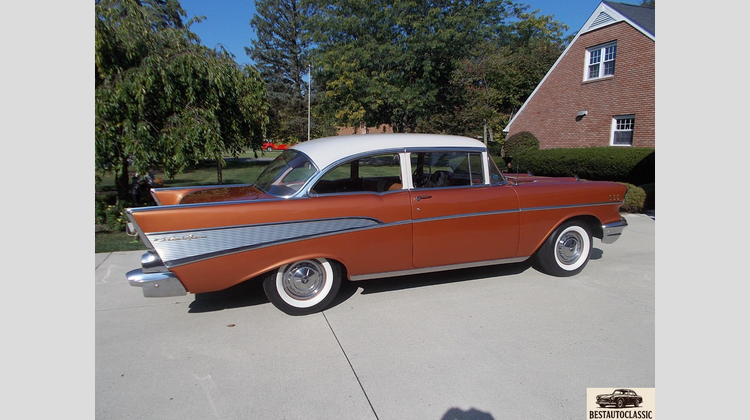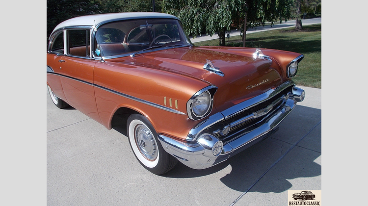 1957 Chevrolet Belair 2 Dr. , 6 cyl. standard shift, complete refinish over original finish. All original sheet metal, 90% of the stainless trim, seat covers are original also. Door panels, carpet, headliner are new. Trunk area has no rust, paint in trunk area as well as all wiring is original. It still has Texas safety sticker dated 1957 on the windshield. Bumpers are original, replaced taillight assembly and hood molding. Car has 41,000 original miles.