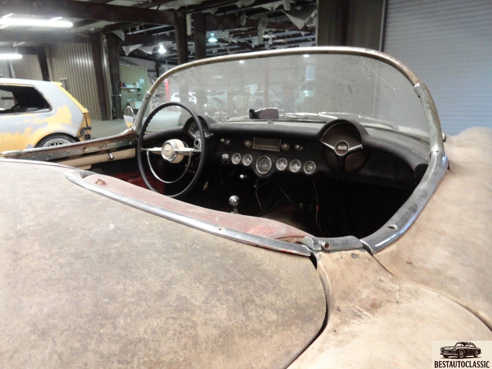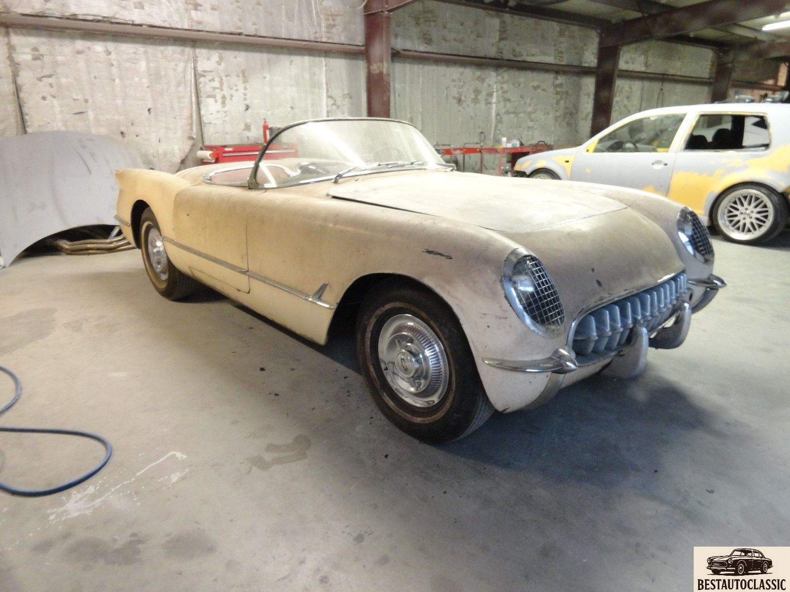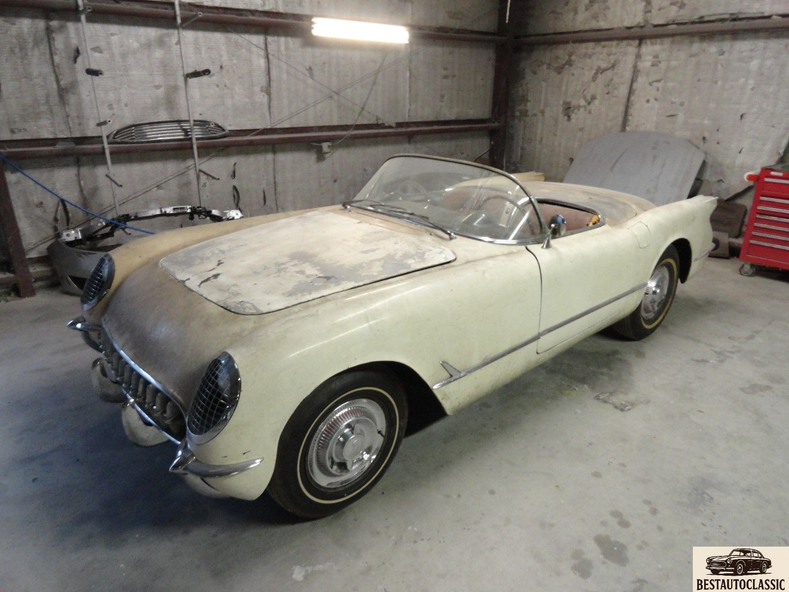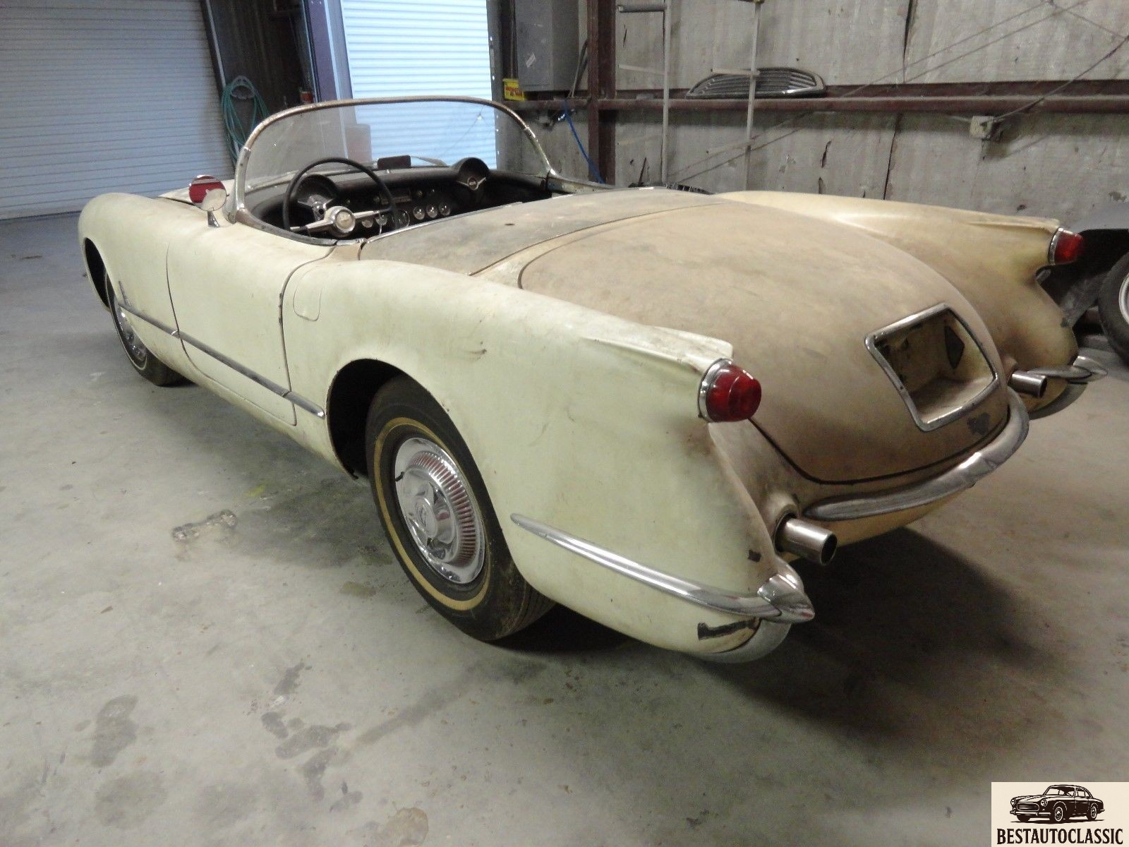 1954 Corvette. Very solid car with a very solid frame. Although the car is currently painted white, It was born pennant blue with tan interior(very rare and desirable). It does roll and steer very easy.