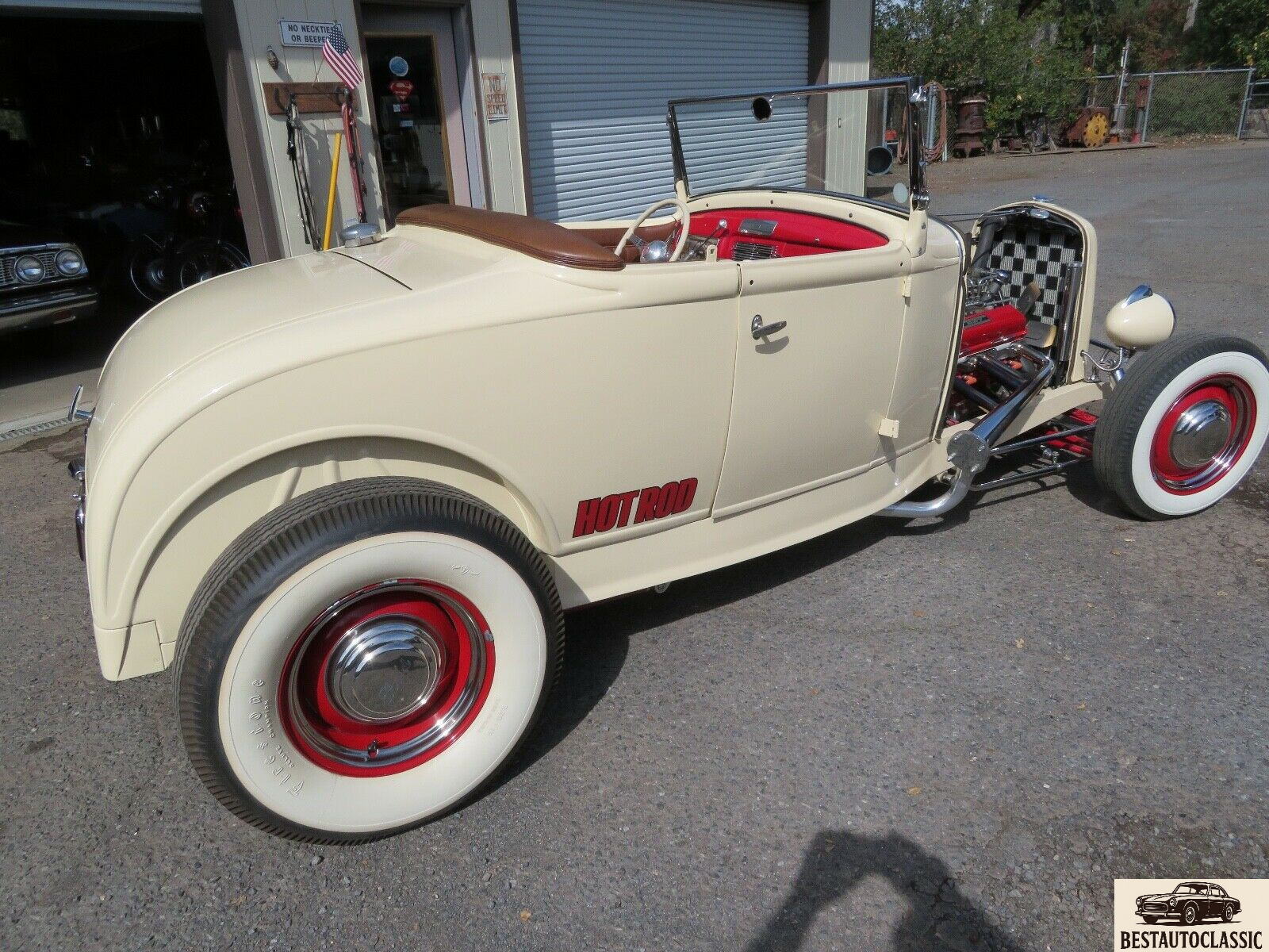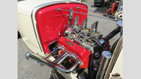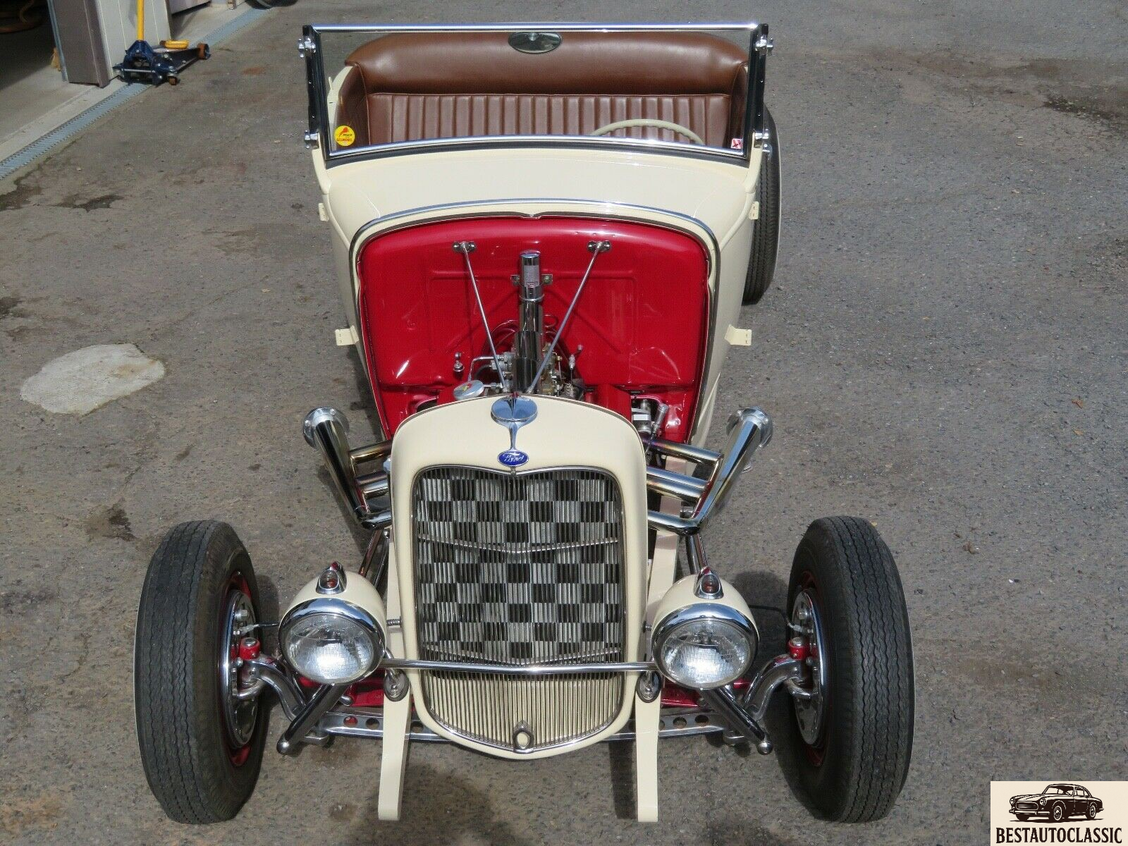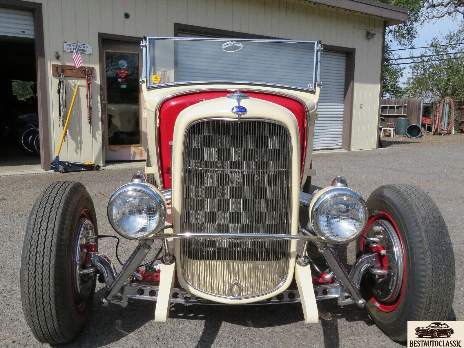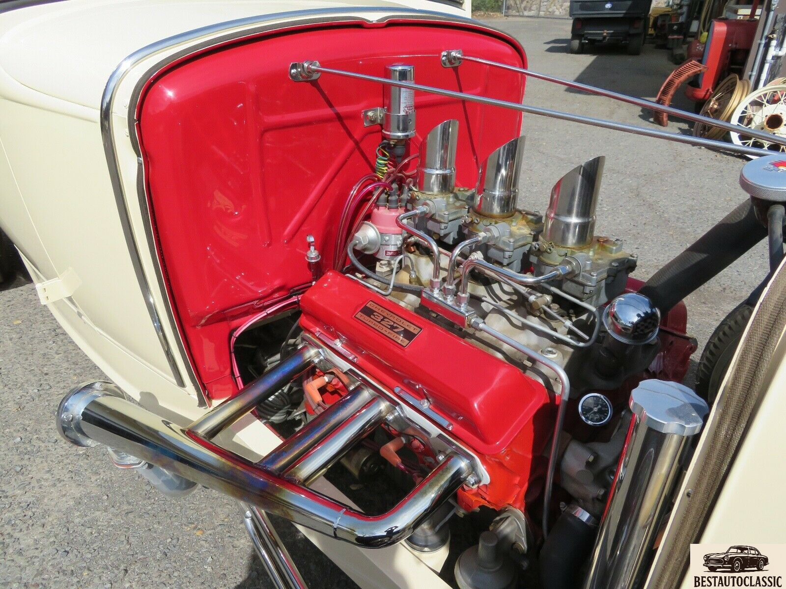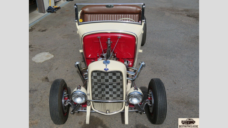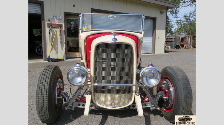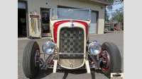 All steel, laser straight - beautiful paint â?? too much chrome. Built with below listed components: New Brookville body Pro-built custom â??32 frame boxed end to end (excellent); narrowed to match â??Aâ? body Mr. Roadster windshield with 2â? chop â??40 dash, original steel all Pro wired 12 volt system Original moon race car gas cap Upholstery by Dan Most (Beautiful) Billet aluminum â??40 Ford steering column by Juliano and custom spoked steering wheel by Juliano (very expensive); Mullins steering. Balanced 327 Chev. built by Diablo Machine; comp cam and valve train 3 2â??s (Rochesters) built and tuned by Charlieâ??s Speed Shop, Chattanooga, Tenn. Old school custom lake style headers with complete legal exhaust system plumbed under car Built TCI 350 Transmission; Currie rear end; 3.25 gears - 4 bar w/adjustable coil over shocks Custom drilled Chrome front axle 4â? drop - 4 bar Lincoln Zephyr brakes Walker radiator w/32 Ford steel grille Peterbuilt head lights and park lights Firestone wide whites (terribleâ?¦.needs radialsâ?¦) Trunk area is upholsteredâ?¦perfect