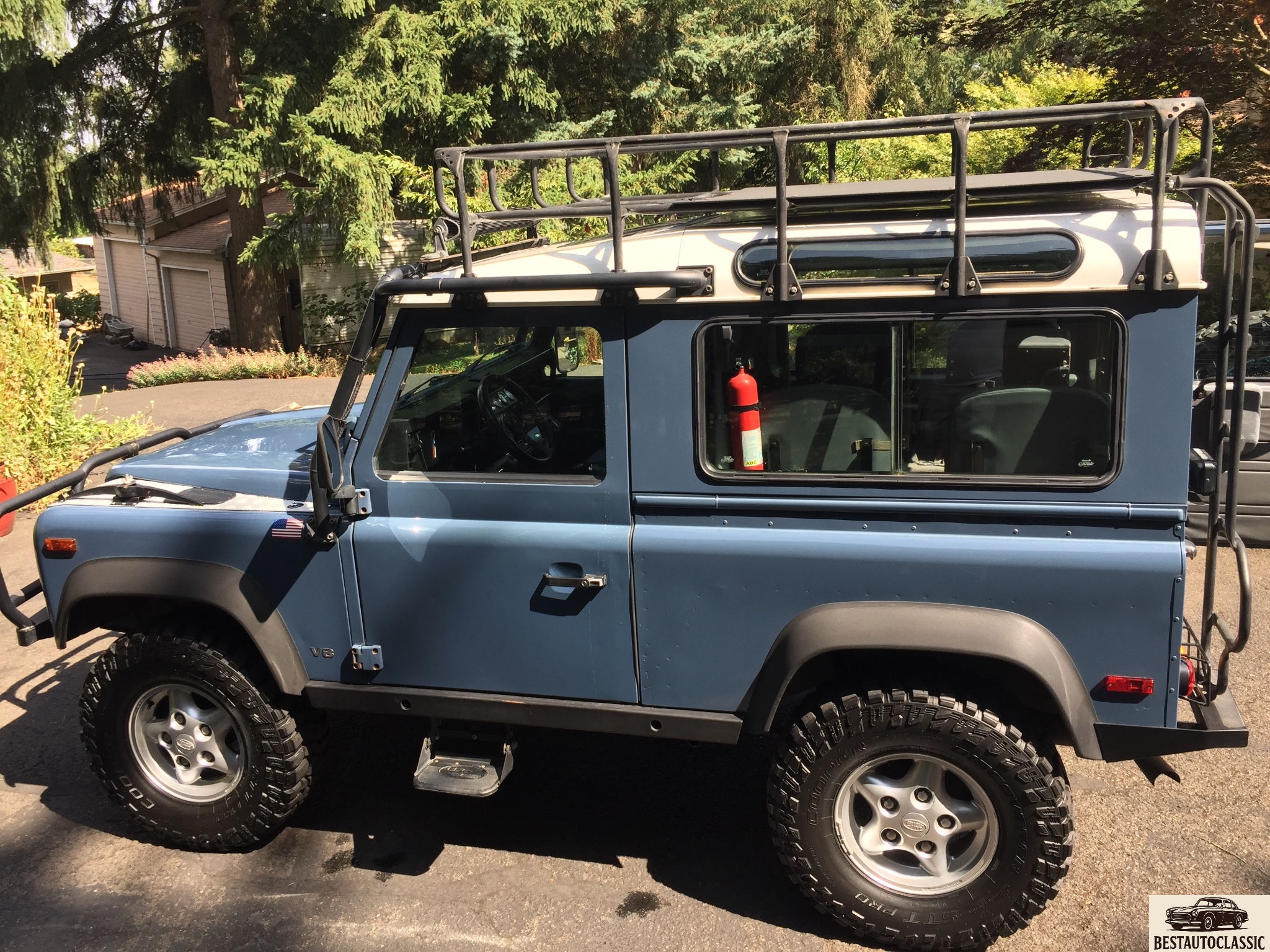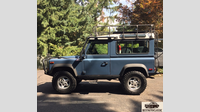 He has since made numerous modifications, including a subtle lift, aftermarket roof rack, bumpers, bull bar, winch, rock sliders, air compressor, air locking rear differential, heated front seats, and more. Powered by a 4. 0-liter V8 engine paired to 4-speed automatic transmission, the truck has been well maintained and comes with a large collection of service records and receipts, as well as many of the original removed items. The body is finished in Arles Blue (424), with a small blemish noted on the passenger door. The glass and body panels are reported to be original. The stock 16â?³ wheels wear Cooper Discoverer STT Pro tires, and a set of white Defender 110 steel wheels mounted on BFG Mud Terrains are also included. A 2â?³ lift was installed, stronger front and rear bumpers were fitted, and the running boards were replaced with rock sliders. Folding side steps are genuine Land Rover units. The removable roof rack is by Safety Devises, and is one of few made in England that fit with a NAS Defender 90 factory roll cage. An aftermarket Mantec swing-out spare tire carrier, Safari Gard front bull bar, M8000 Warn winch, and a roof mounted LED light bar have also been installed. It has been featured in several 4WD publications and advertisements, and also won the â??Best Land Rover in Showâ? award at the 2009 All British Field Meet presented by Land Rover Portland. Inside, the cabin features factory air conditioning, and was modified with a central panel to consolidate switches and gauges. New Ashcroft Elite MK-II heated front seats were added in October 2015. An ARB compressor is located under the passenger seat, and a 350mm Momo competition steering wheel and Kenwood head unit have replaced the stock units. The original front seats and steering wheel are included in the sale. The rear sliding window guides and felts were replaced in 2015, and a new headliner was installed in 2016. The stock folding rear jump seats were reinstalled one month ago. The 4. 0-liter aluminum block Rover V8 was good for 182 hp when new and is backed by a ZF 4-speed automatic transmission. Additionally, the following services have been performed over the last five years:11/09/2012 â?? Replaced trailing arm bushings12/07/2012 â?? Replaced shocks and steering stabilizer3/01/2013 â?? Stainless steel brake and transmission cooler lines installed, wheel bearings refreshed8/01/2014 â?? A/C system repaired â?? lines and seals replaced, unit recharged and tested1/15/2015 â?? Replaced u-joints, major service4/02/2015 â?? Replaced pitman arm, tie rod ends, front crankshaft oil seal, and spark plugs, front end alignment performed9/15/2016 â?? Replaced catalytic converter1/06/2017 â?? Replaced O2 sensors, transmission serviced2/15/2017 â?? Installed newly rebuilt transfer case8/22/2017 â?? Replaced both anti-sway barsAn ARB air locking rear differential has been installed and can be actuated from the cabin. Three files of records show that service was performed primarily by The Sports Car Shop in Eugene, Oregon, and Columbia Rovers in Portland. Invoices for the parts used to modify the truck and their installation are also included.