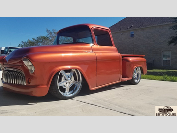 Sweet Custom 56 Apache Big Back window. Camaro front clip grafted onto the stock frame. front Ridetech air ride. rear stock leaf spring with air shocks. The door handles, emblems have been shaven.…
